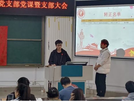 本科生第二党支部在学院214报告厅,组织召开党员大会暨2月份主题党日活动。会议由党支部副书记沈信运同志主持,支部书记钟诚同志及支部全体党员参加。