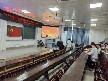 研究生第一党支部和电信221班在学院214报告厅联合开展主题党日、主题团日活动。本次活动由研究生第一党支部副书记韦惜旖同志主持。