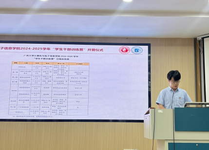 2024-2025学年学生干部训练营开营仪式在214报告厅举行,学院领导、辅导员、学校研究生会代表以及全体参训学员共计180多人参加仪式,仪式由计科232班梁舒琦同学主持。