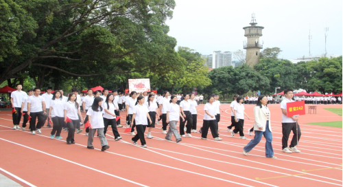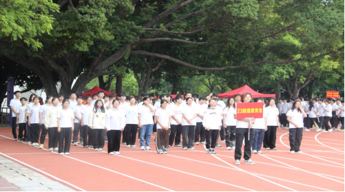 2024年运动会在西校园田径场顺利举行。学院党委书记赵进创教授、常务副院长张振荣教授、党委副书记邓珍琪老师、副院长郑嘉利教授以及辅导员和班主任出席开幕式。