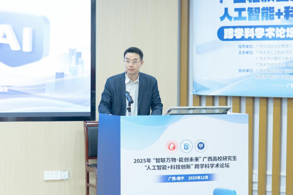 主动服务国家战略与区域发展需求,今年正式成立人工智能学院,并成功招收首届本科生。本次论坛的举办,是学校推动学科交叉融合、培育高层次创新型人才的重要举措,旨在为全区研究生搭建一个开放、协同、前沿的学术对话平台,助力打造面向东盟的人工智能创新高地。