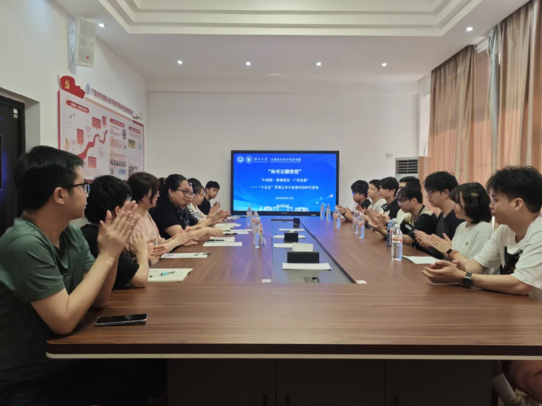 4月15日下午,看漫画 在学院213会议室举办“和书记聊思想”主题交流活动。本次活动以“AI赋能·青春担当·广西发展——‘十五五’开局之年计电青年的时代答卷”为主题,旨在搭建平等、开放、真诚的对话平台,促进师生深度交流。看漫画 党委书记赵进创、党委副书记夏士岚、辅导员黄千芊出席活动,与来自各班级和团学组织的20余名学生代表面对面座谈,围绕同学们在学习生活中遇到的困惑与成长需求展开深入沟通。