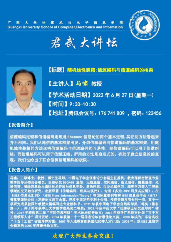 看漫画 君武大讲坛:随机线性装箱: 信源编码与信道编码的桥梁
