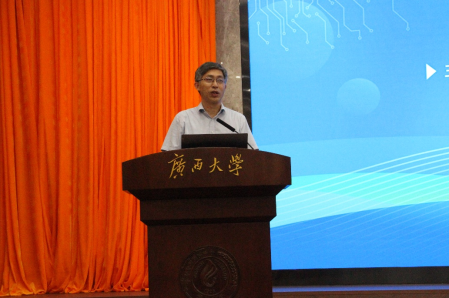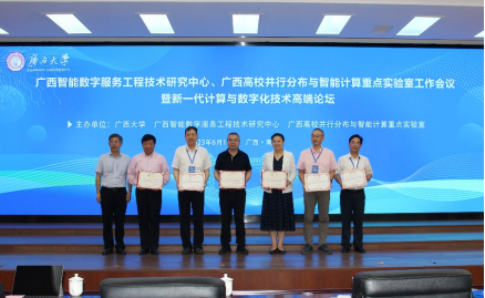 副院长陈宁江教授主持广西智能数字服务工程技术研究中心、广西高校并行分布与智能计算重点实验室揭牌仪式,并为新一届的工程技术研究中心技术委员会、高校并行分布与智能计算重点实验室学术委员会颁发证书。