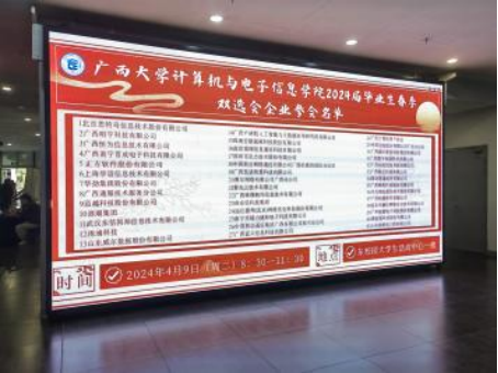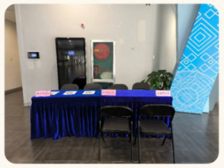 4月8日,在双选会的前一天,一部分党员志愿者前往大学生活动中心,为每个企业布置好粘贴了企业名称的桌椅并准备好矿泉水、工作证等物品,在入口处摆放展牌、海报和横幅,并在合适位置粘贴指路箭头标志和企业展会方位图,方便企业招聘负责人和毕业生寻找位置。另一部分党员志愿者负责与企业进行一对一的对接,提前电话联系企业招聘负责人,确定企业是否参会、几人参会以及需要帮助解决的其他问题等。