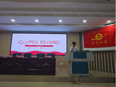 会议第二项,经验分享环节,邀请了4位同学分享自己的保研、考研经验。首先是路振宇同学分享保研经验,他以专业成绩第一名成功推免至东南大学,结合自身的学习经验,他将推免政策、推免注意事项等逐一和同学们分享。接着是张胜同学分享保研经验,他推免至华南理工大学,结合自己的学习和竞赛情况,他分享自己如何从推免边缘到逆袭上岸的经验。第三是陈聪同学分享考研经验,作为看漫画