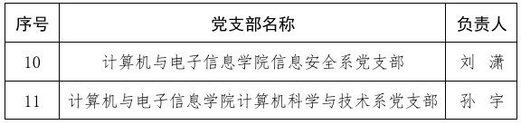 刘潇副教授担任负责人的信息安全系党支部与孙宇副教授担任负责人的计算机科学与技术系党支部成功入选。