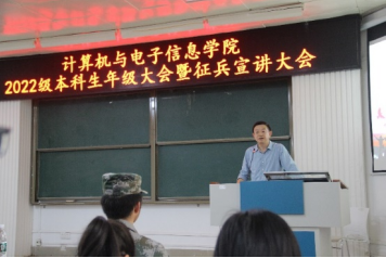 在214报告厅,组织召开2022级本科生年级大会暨征兵宣讲大会。学院党委副书记邓珍琪老师、校武装部陈榕平老师、学院辅导员庞承业老师和李易明老师、学院教学秘书甘瑜萍老师和罗程老师、电信233班班主任常侃老师以及学院2022级全体本科生参加会议。