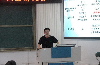 然后,2019级王志鹏和朱硕隆同学分享了个人学习工作经历、学习方法、科研竞赛、社会实践、学生工作服务、考研、就业等情况,并给同学们提出一些建议。