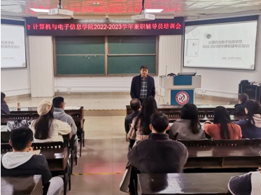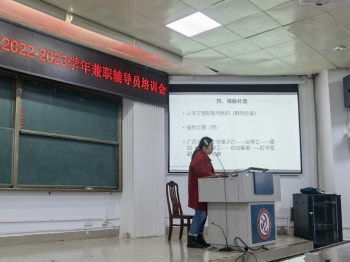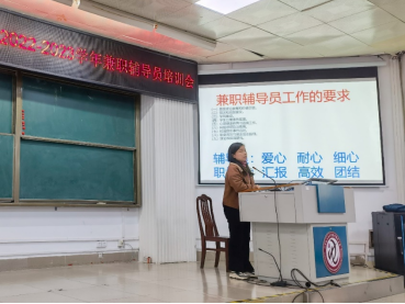 为加强学院兼职辅导员队伍建设,明确工作职责,提高管理服务工作实效,202212月2日下午,214报告厅,召开2022-2023学年兼职辅导员工作培训会议。学院全体专职和兼职辅导员参加会议。