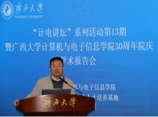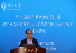 On the morning of November 18, 2023, the "Computer Science Lecture" series of activities - Expert Academic Report Meeting, jointly organized by the School of Computer and Electronic Information of Guangxi University, the Graduate Student Association of the School of Computer and Electronic Information of Guangxi University, and the CCF Guangxi University Student Branch of the Chinese Computer Society, was held in the second conference room of Junwu Academy. This event invited Professor Hao Peng from Zhejiang Normal University, Professor Rui Mao from Shenzhen University, Professor Gang Wang from Nankai University, and Professor Jigang Wu from Guangdong University of Technology to hold a wonderful expert academic presentation on topics such as "Advanced Technologies and Applications of Big Model Security", "Big Data Architecture: General Data Processing Mode for Measuring Space", "Research Progress on Hard Disk Fault Prediction in Data Centers", and "Software and Hardware Optimization Technology for Neural Network Computing". Professor Cheng Zhong from the college presided over the report meeting, and about 100 graduate students from the college attended.