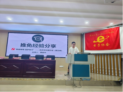 会议第二项,经验分享环节,邀请了4位同学分享自己的保研、考研经验。首先是路振宇同学分享保研经验,他以专业成绩第一名成功推免至东南大学,结合自身的学习经验,他将推免政策、推免注意事项等逐一和同学们分享。接着是张胜同学分享保研经验,他推免至华南理工大学,结合自己的学习和竞赛情况,他分享自己如何从推免边缘到逆袭上岸的经验。第三是陈聪同学分享考研经验,作为看漫画